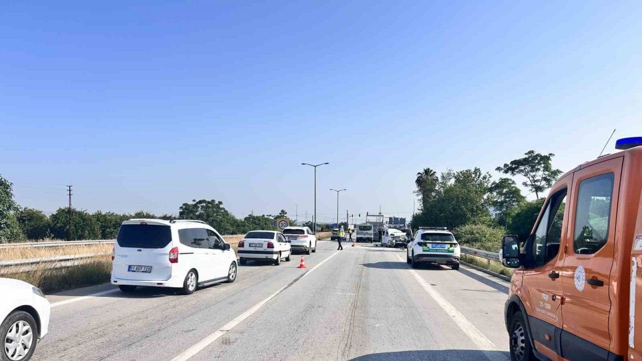 Kaza, Erzin ilçesi gişeleri mevkiinde yaşandı. İ.H.D. idaresindeki 33 NKN 27 plakalı kamyon, sürücüsünü direksiyon hakimiyetini kaybetmesiyle seyir halindeki 3 araca çarptı. Kazada yaralanan 10 şahıs, olay yerindeki ilk müdahalenin ardından hastaneye sevk edildi. Sağlık ekiplerinin yaptıkları kontrollerde 27 GE 878 plakalı hafif ticari araçtaki 23 yaşındaki Ahmet İ.’nin olay yerinde hayatını kaybettiği öğrenildi. Kazada ölen şahsın Gaziantepli olduğu ve bayram tatilini fırsat bilerek denize yüzmeye gittiği öğrenildi. Jandarma ekipleri olayla ilgili inceleme başlattı.