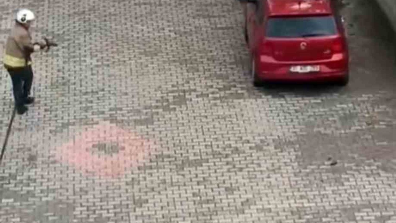 Hatay’da park halindeki bir otomobil, henüz bilinmeyen bir nedenle alev aldı. Korku dolu anlar, çevredeki vatandaşların cep telefonu kamerasına yansıdı.