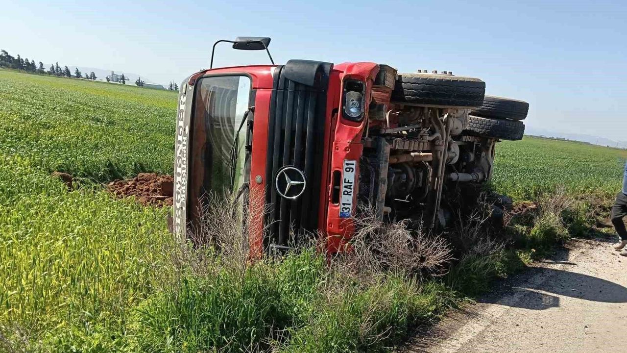 Hatay'ın Kumlu ilçesinde sürücüsünün kontrolünü kaybetmesiyle devrilen tırın sürücüsü hafif yaralandı.