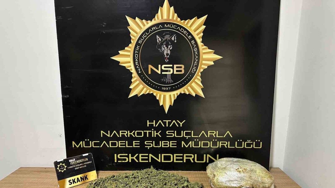 Hatay’ın İskenderun ilçesinde durdurulan araçta 1 kilo 750 gram esrar, 673 gram skunk ele geçirildi.