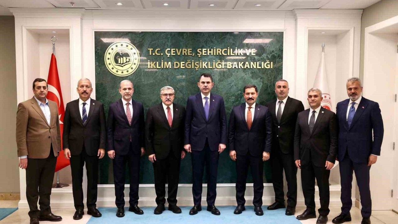 Asrın felaketinde yerle bir olan Hatay’ın yeniden inşa süreci için Çevre, Şehircilik ve İklim Değişikliği Bakanlığı kısa sürede çalışmalara başlamıştı. Kentin dört bir yanında devam eden inşaat çalışmaları ve teslim edilen konutlar vatandaşlara umut olmaya devam ediyor. Hatay Valisi Mustafa Masatlı, Hatay Büyükşehir Belediye Başkanı Mehmet Öntürk ve beraberindekiler Bakan Murat Kurum’u ziyaret etti. Ziyarette; Hatay’ın yeniden ihya, inşa ve imar süreci kapsamında yürütülen çalışmalar ve projeler hakkında değerlendirmelerde bulunuldu.