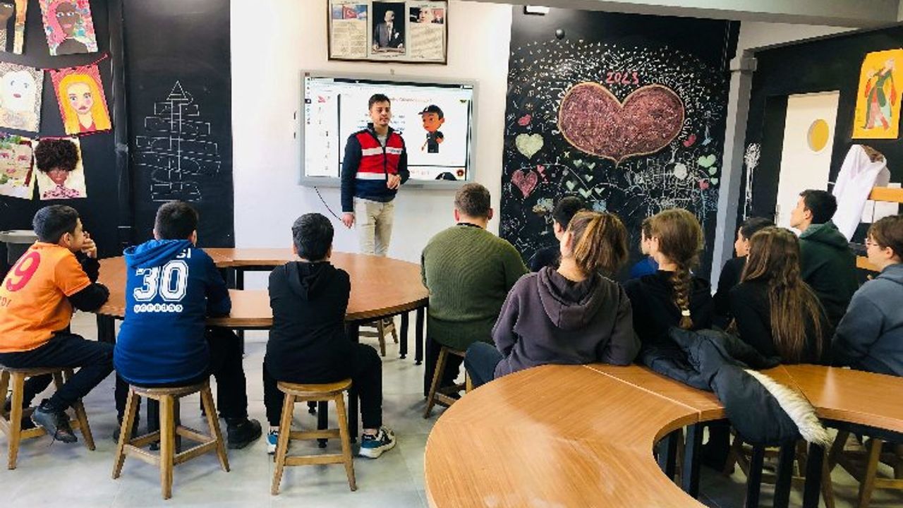 Eğitimde, dijital bağımlılık, siber zorbalık, güvenli internet kullanımı, siber dolandırıcılıktan korunma ve sosyal medya kullanımında dikkat edilecek hususlar hakkında bilgiler verildi.