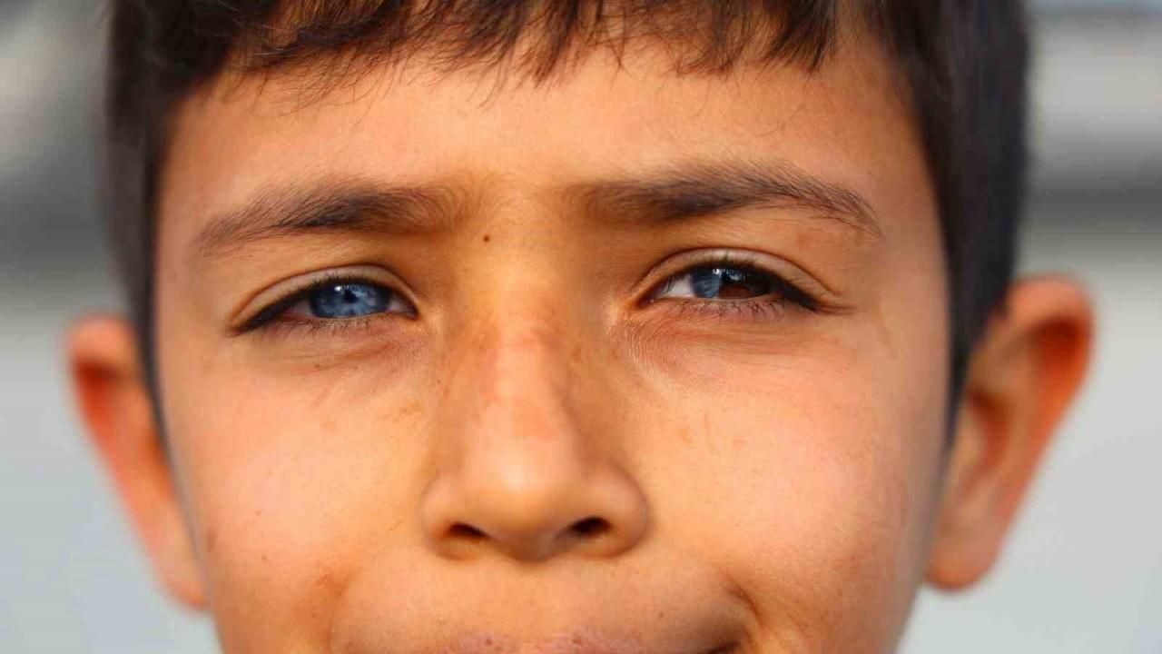 Adana’da doğuştan bir gözü mavi, diğer gözünün de yarısı mavi yarısı kahverengi olan küçük çocuk, görenleri hayrete düşürüyor.