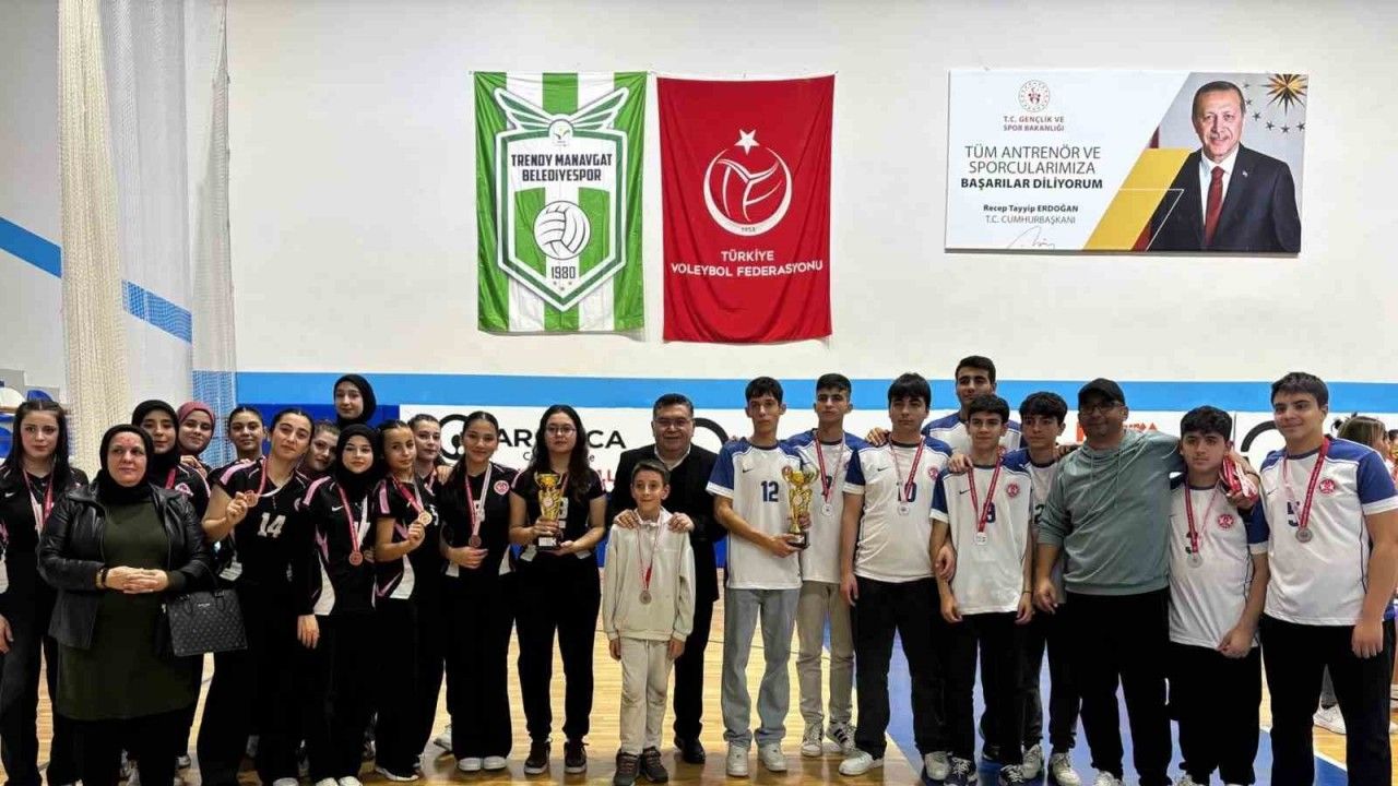 İlçe Okul Sporları Tertip Komitesi organizatörlüğünde, kızlarda 26, erkeklerde 9 olmak üzere 35 takım ve 480 sporcunun katılımıyla geçtiğimiz günlerde Mehmet Akif Ersoy Spor Salonu’nda gerçekleştirilen 2025-2026 eğitim öğretim yılı Manavgat okulları arası voleybol gençler müsabakaları final karşılaşmalarıyla sona erdi. Manavgat Anadolu İmam Hatip Lisesi kız takımı yarı final oynayarak 3.’lük kupasını, erkek takımı ise final oynayarak 2.’lik kupasını kaldırmaya hak kazandı.