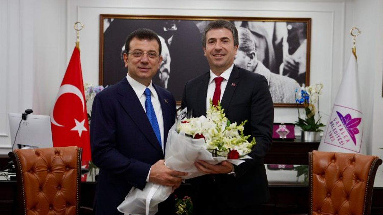 İBB Başkanı Ekrem İmamoğlu, Çatalca Belediye Başkanı Erhan Güzel’e tebrik ziyaretinde bulundu. Çatalca ve yakın ilçelerin Kanal İstanbul, Terkos Gölü ve çevresi, kaçak yapılaşmalar, yoğun imar çalışması gibi İstanbul'un gelecek projeksiyonunu tehdit eden sorunları olduğuna dikkat çeken İmamoğlu, “Özellikle arazi büyüklüğü açısından Çatalca, Silivri, Eyüpsultan, Arnavutköy; karşıda Şile, Pendik gibi, bu alanlarda çok hassas bir sürecin yönetilmesini istiyoruz. Bu yönleriyle önemli bir makamdasınız. Çok önemli bir sorumluluğun evresinde görev yapacaksınız. Tabiri caizse yapacağımız çok iyi şeylerle ve yapmayacağımız kötü şeylerle, tarihe geçmenin bir aşamasındayız” dedi.İSTANBUL (İGFA) - İstanbul Büyükşehir Belediye (İBB) Başkanı Ekrem İmamoğlu, 31 Mart 2024 yerel seçimlerinden başarıyla çıkan Çatalca Belediye Başkanı Erhan Güzel’e tebrik ziyaretinde bulundu. Güzel tarafından makam odasında ağırlanan İmamoğlu, “Erhan Başkanımızın seçilmesinden ötürü büyük mutluluk duyduk. Ben de kendisini uzun yıllardır tanıyorum. İşine sadakatle sarılacağına olan güvenim tamdı. Bu kapsamda, Çatalca halkının da yüksek teveccühünü alarak böyle bir göreve gelmiş olması, bana göre hem Çatalca için hem de İstanbul'umuzun ilçelerinin genelinde yaratılacak bir senkronize çalışma adına, güzel bir sonuç oldu” dedi.