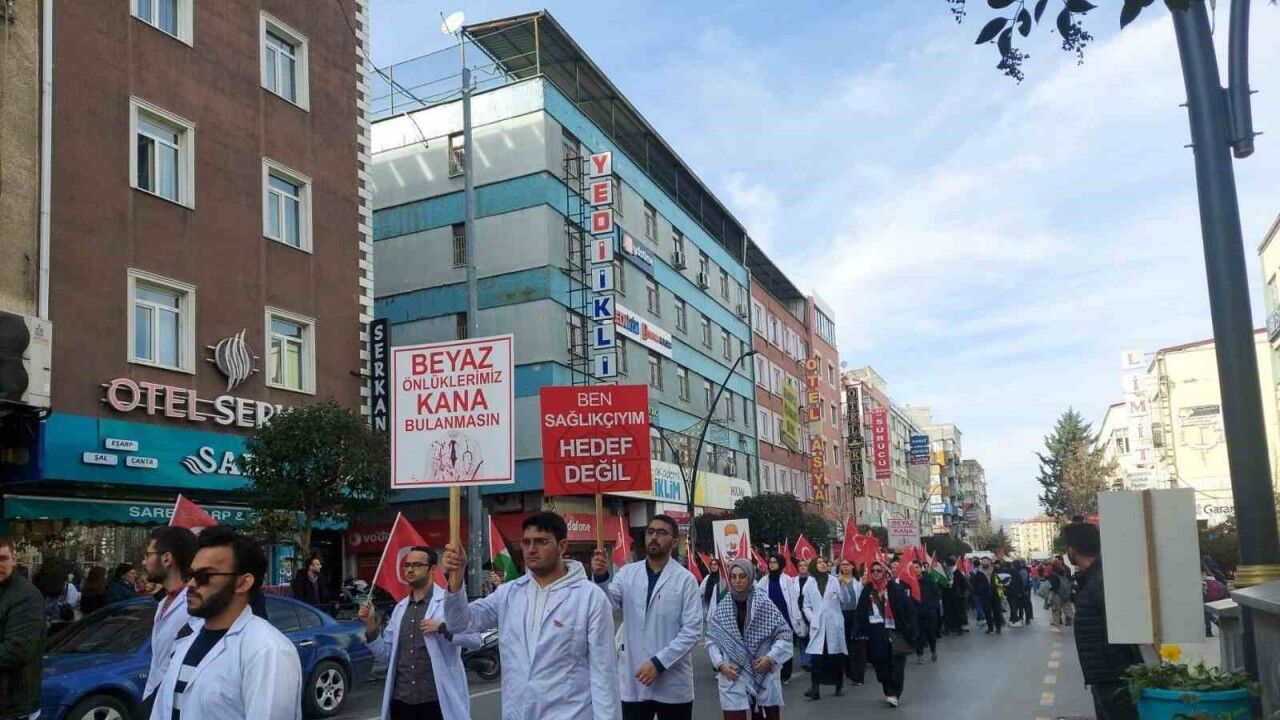 Isparta’da hekimler ve sağlık çalışanları beyaz önlükleriyle Filistin’de yaşanan saldırılara dikkat çekerek "Sessiz Yürüyüş" gerçekleştirdi.