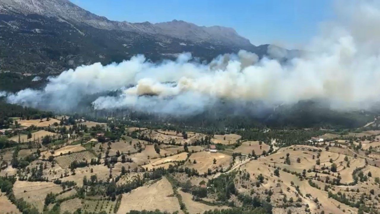 Isparta’nın Sütçüler ilçesine bağlı Aşağıyaylabel köyü yakınlarında çıkan orman yangınına ekiplerin havadan ve karadan müdahalesi sürüyor.