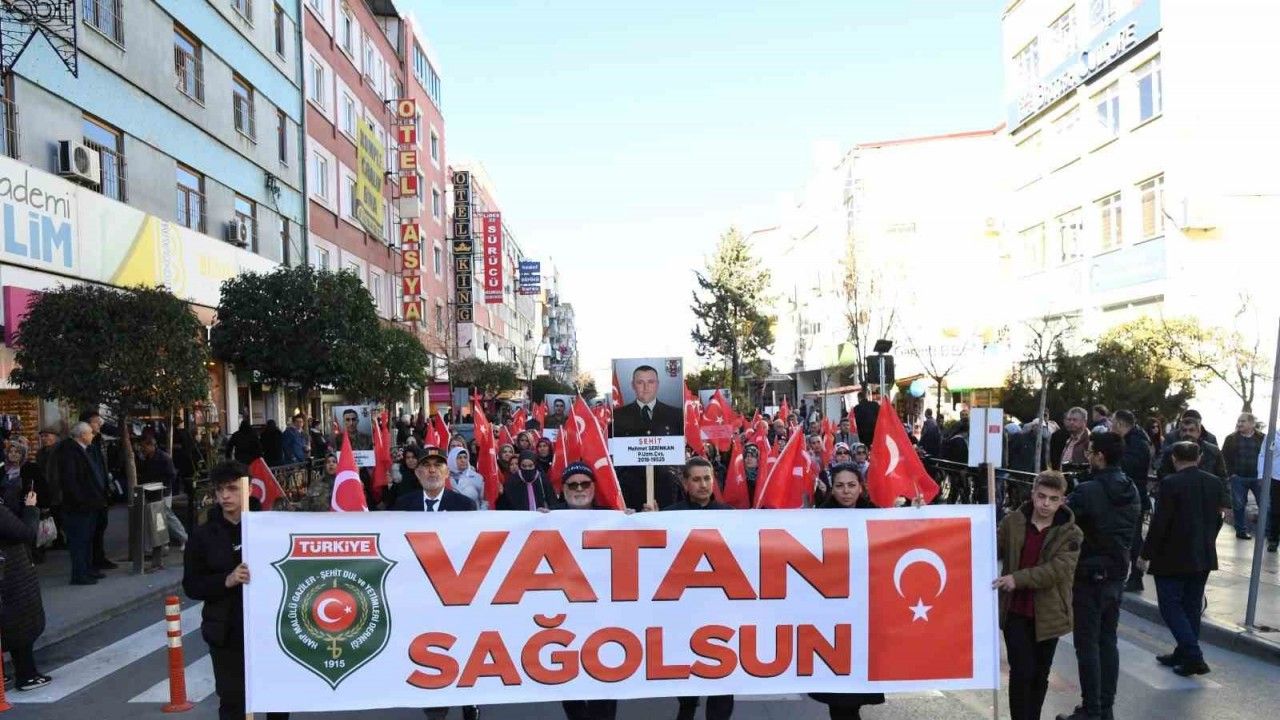Mimar Sinan Camii önünde düzenlenen törende konuşan 2018 Afrin’de şehit olan Ali Yılmaz’ın annesi Emine Yılmaz, "Oğlum 5 yıl oldu şehit olalı dile kolay bize 5 saniye gibi geliyor. Bu devlet için canını, evladını, kardeşini, eşini vermeyen hiç kimse anlayamaz. Bugün yapılan anlamlı bir yürüyüştü. İnşallah son olur. Rabbim yavrularımızın şahadetini kabul etsin, bizleri de şefaatine nail eylesin. Görevi başındaki tüm askerlerin Allah yardımcısı olsun” şeklinde konuştu.