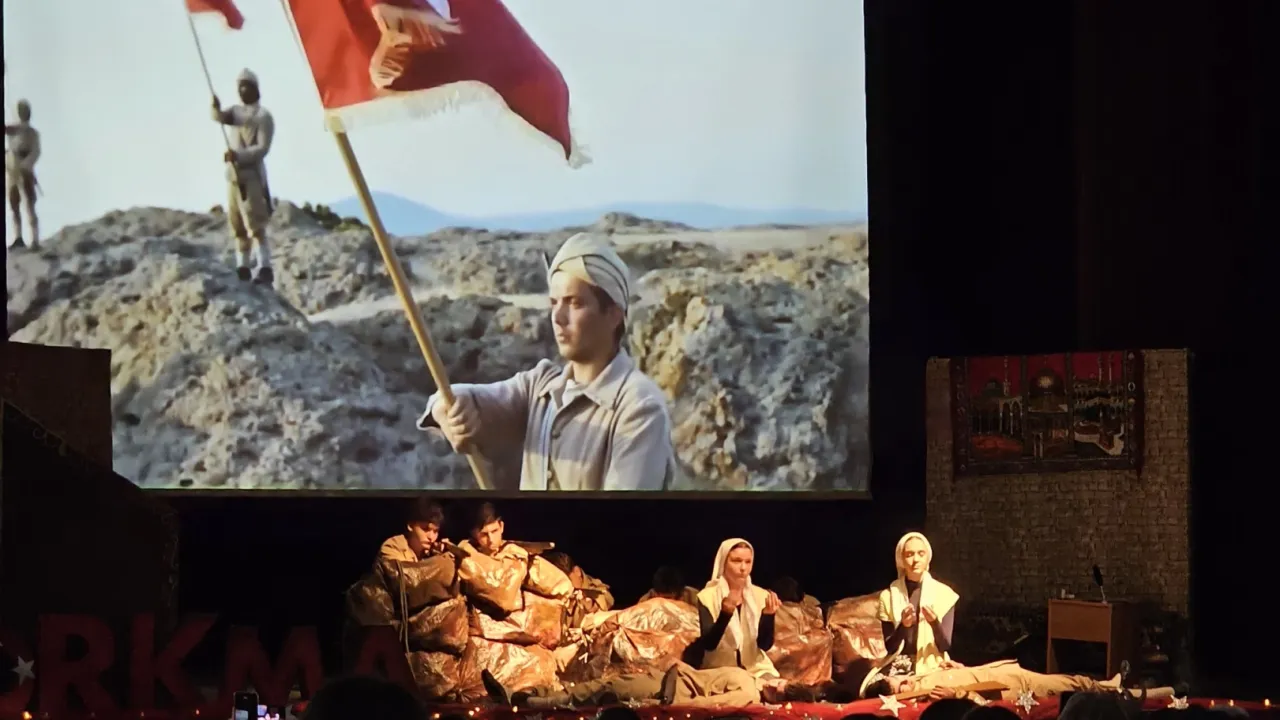 İstiklal Marşı’nın TBMM'de kabulünün 104. yıl dönümünde Kazıklı Kervansarayı Kültür Yapısı’nda düzenlenen programda lise öğrencileri tarafından sahnelenen "İstiklal Yolunda Mehmet Akif" adlı tiyatro oyunu, izleyenlerin beğenisini kazandı.