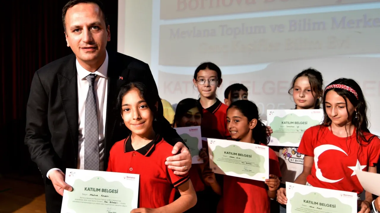 İzmir Bornova'da Mevlana Toplum ve Bilim Merkezi'nde çocuklar, gençler ve aileler bilimle buluştu.İZMİR (İGFA) - Bornova Belediyesi Mevlana Toplum ve Bilim Merkezi’nde 2025 Bahar Dönemi Katılım Belgesi Töreni düzenlendi. Bilim Kulüpleri ve ilk kez açılan Python Programlama Atölyesi’ne katılan toplam 177 öğrenciye katılım belgesi verildi. Törende konuşan Başkan Ömer Eşki, merkezin kuruluş hikâyesini anlatarak emeği geçen herkese teşekkür etti. Etkinlikte Ege Üniversitesi öğrencilerine de gönüllü katkılarından dolayı teşekkür belgeleri takdim edildi.