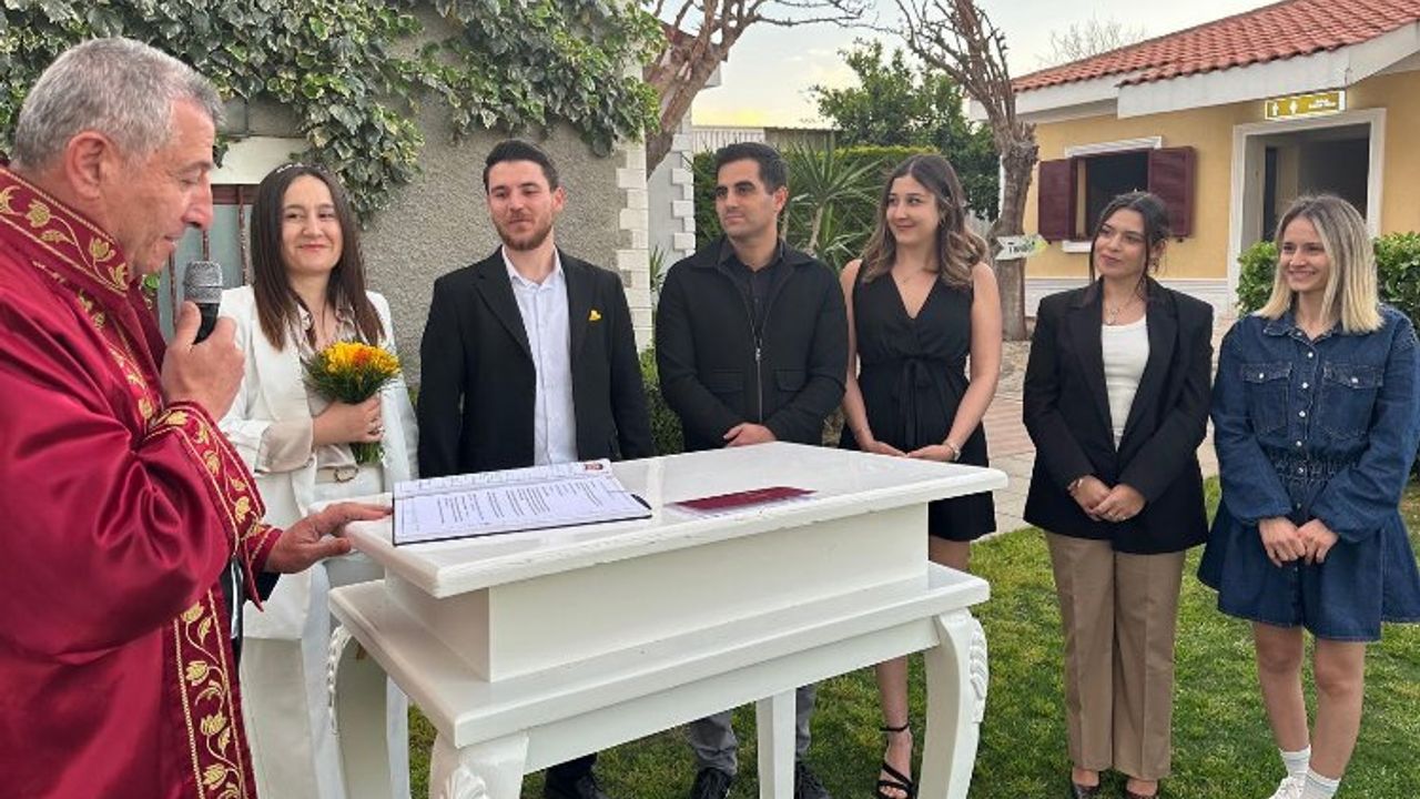 İzmir'de Güzelbahçe Belediye Başkanı Mustafa Günay, göreve gelir gelmez ilk nikahını kıydı, “Bu nikahla belediye başkanı olarak ilk imzamızı da atmış olduk” dedi.İZMİR (İGFA) - 31 Mart Yerel Seçimler sonrası CHP’de mazbata alımı ve belediyeleri devralma programları devam ediyor. Mazbatasını alan Güzelbahçe Belediye Başkanı Mustafa Günay görevi devir aldığıilk günnikah kıydı.