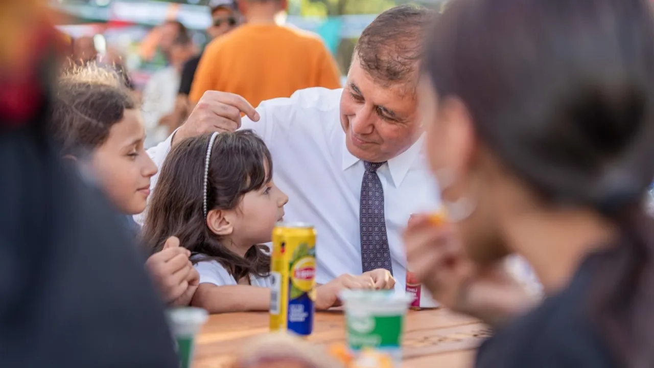 İEF’nin üçüncü gününde İzmir Büyükşehir Belediyesi Sosyal Hizmetler Dairesi Başkanlığı’nın Buca Göksu, Konak Ballıkuyu ve 1. Kadriye mahallelerinde bulunan Dayanışma Noktalarından hizmet alan anne ve farklı yaş gruplarından çocuklarla buluşan İzmir Büyükşehir Belediye Başkanı Dr. Cemil Tugay ve eşi Öznur Tugay yeniden çocuklarla bir araya geldi. Buca’nın Göksu Mahallesi ve Konak’ın Ballıkuyu Mahallesi’nde bulunan Dayanışma Noktalarından hizmet alan 16 anne ve farklı yaşlarda 39 çocukla yemek alanında buluşan Başkan Tugay, miniklerin taleplerini dinlerken, günün anısına hatıra fotoğrafı da çektirdi.