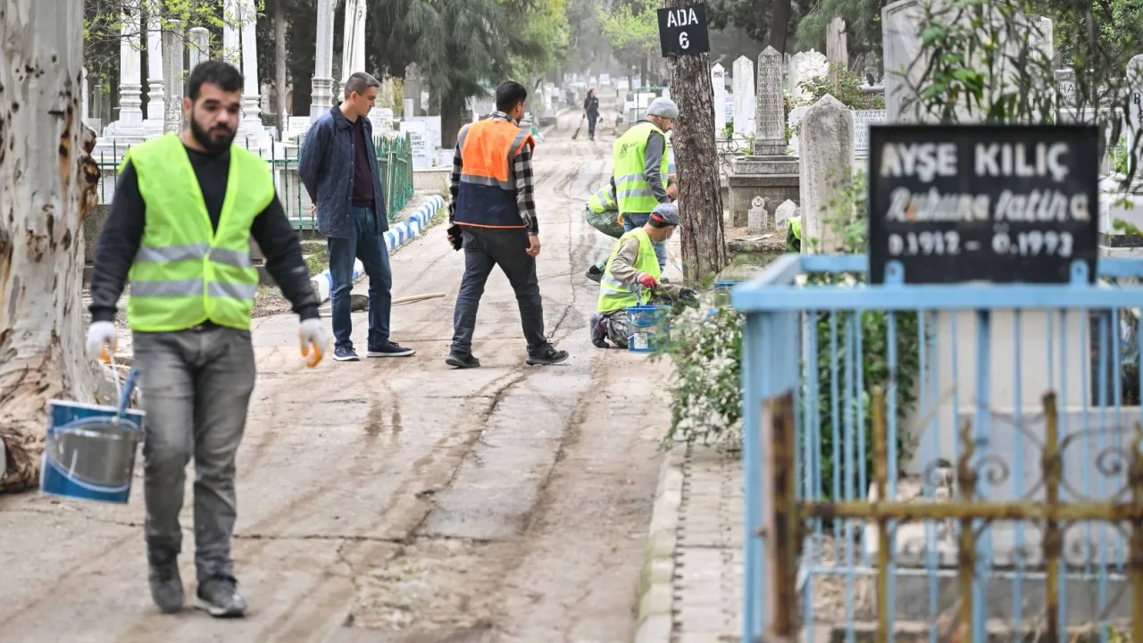 İzmir'de Ramazan Bayramı öncesinde Bornova Belediyesi ve İzmir Büyükşehir Belediyesi Mezarlıklar Daire Başkanlığı, ilçedeki mezarlıklarda temizlik ve bakım çalışmalarını tamamladı.İZMİR (İGFA) -  İzmir'de Bornova Belediye Başkanı Ömer Eşki ve İzmir Büyükşehir Belediyesi Mezarlıklar Daire Başkanı Ali Kemal Elitaş, ekiplerin çalışmalarını yerinde inceledi.