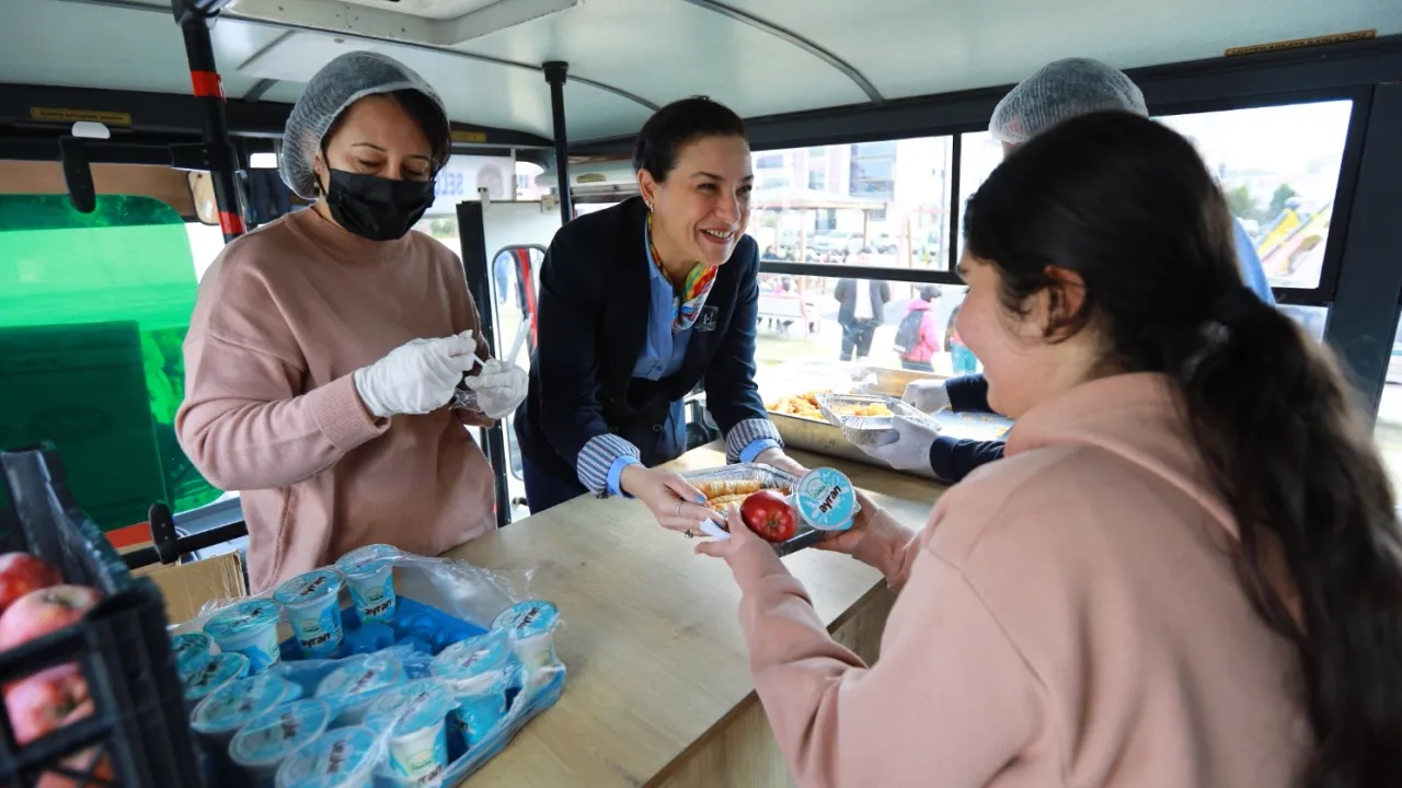 İzmir'de Efes Selçuk Belediyesi, Kent Lokantası Öğrenci Otobüsünde dayanışmayı büyütmek için vatandaşlara destek çağrısı yaptı. Öğrenci Otobüsüne maddi destek sunmak isteyen vatandaşların sayısının her geçen gün artmasıyla birlikte örnek bir dayanışma adımı atıldı.İZMİR (İGFA) - İzmir'in Selçuk ilçesinde okulların öğle tatillerinde öğrencilerin yoğun ilgisiyle hizmet vermeye devam eden Kent Lokantası Öğrenci Otobüsü, iki noktada hizmet vermeye devam ediyor.