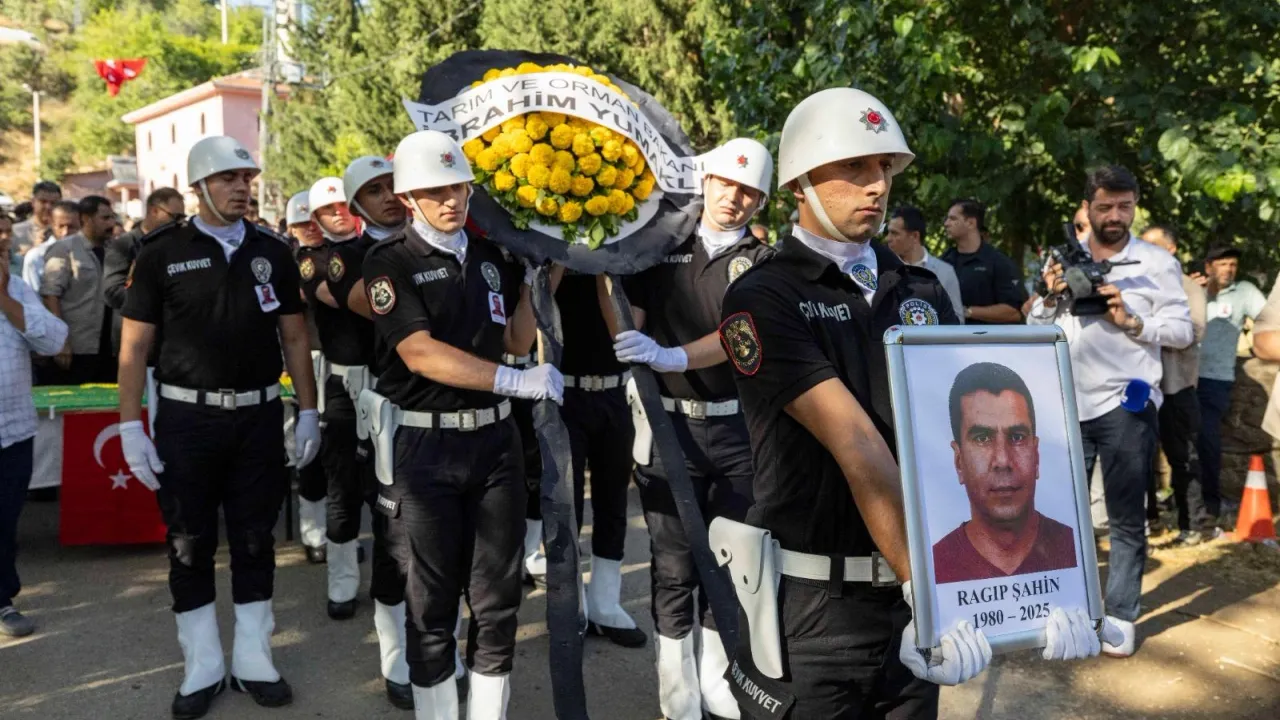 İzmir'in Ödemiş ilçesinde 2 Temmuz'da çıkan yangında yaralanan, kaldırıldığı hastanede hayatını kaybeden orman işçisi Ragıp Şahin, Kiraz'ın Çatak Mahallesi'nde son yolculuğuna uğurlandı.İZMİR (İGFA) - 2 Temmuz'da Ödemiş Tosunlar'da çıkan orman yangınına müdahale ederken ağır yaralanan, Beydağ Orman İşletme Şefliği'nde görevli Ragıp Şahin son yolculuğuna uğurlandı.