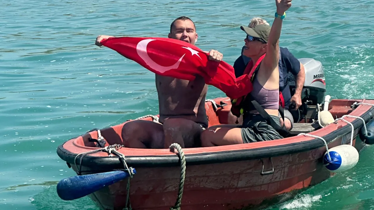 TÜRK BAYRAĞI İLE KIYIYA ÇIKTI