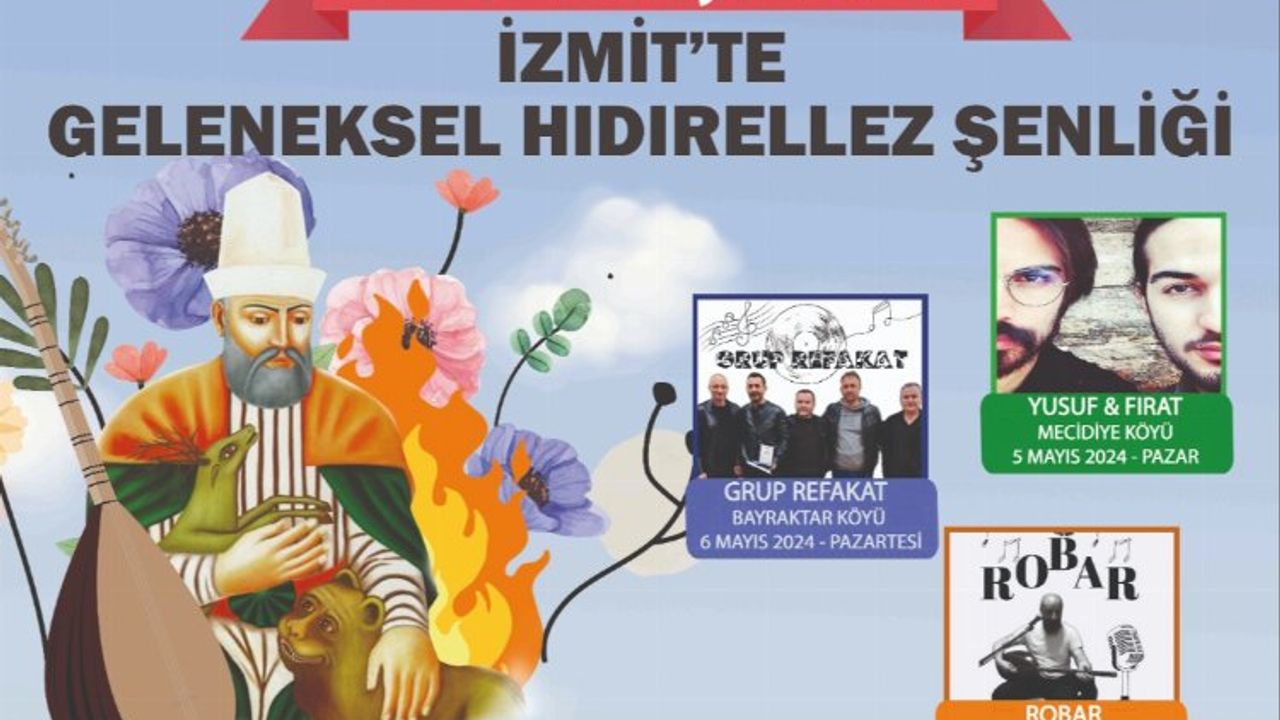 İzmit Belediyesi, doğanın uyanışı ve baharın gelişini temsil eden Hıdırellez sebebiyle Balören, Mecidiye ve Bayraktar’da Hıdırellez Şenlikleri düzenleyecekKOCAELİ (İGFA) - İzmit Belediyesi Kültür ve Sosyal İşler Müdürlüğü bünyesinde bu yıl da baharın müjdecisi Hıdırellez büyük bir coşkuyla kutlanacak. 5-6-7 Mayıs tarihlerinde İzmit’in farklı noktalarında düzenlenecek olan Hıdırellez programları, baharın gelişini coşkuyla karşılayacak olan herkesi bir araya getirecek.