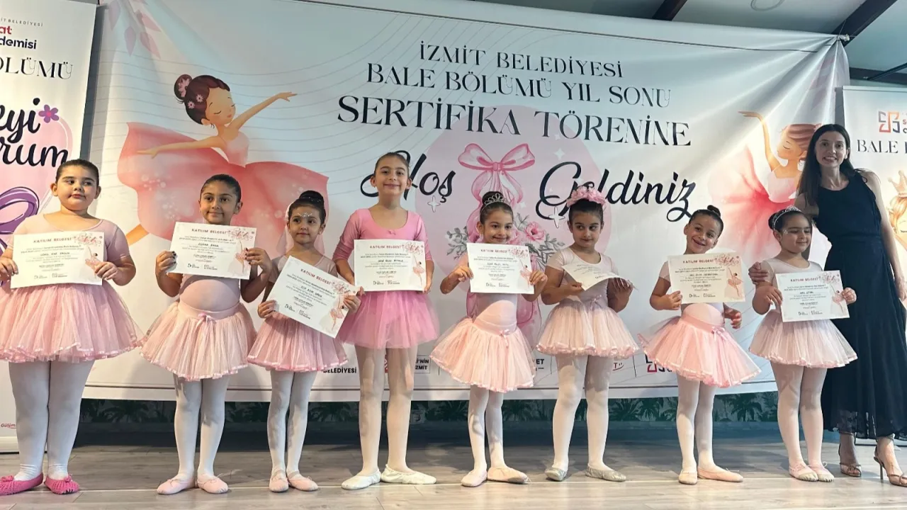 Kocaeli'de İzmit Belediyesi Sanat Akademisi Bale Bölümünde eğitim alan 86 öğrenci, Kuruçeşme Yaşam Merkezi’nde düzenlenen törenle sertifikalarına kavuştuKOCAELİ (İGFA) - İzmit Belediyesi, çocuklara sanatı sevdirmeye ve yeteneklerini desteklemeye devam ediyor. Bu kapsamda, bale eğitmeni Çağlanur Kanpara eşliğinde gerçekleşen eğitimlerde; 4-5 yaş grubundan 32, 6-7 yaş grubundan 31 ve devam grubundan 23 öğrenci, yıl boyunca sahne disiplini ve temel bale teknikleri üzerine eğitim aldı.