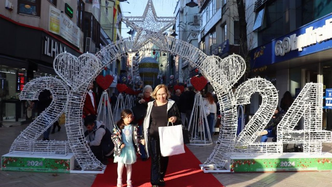 İzmit Belediyesi Fethiye Caddesi'nde vatandaşın ayağına kırmızı halı serdi.KOCAELİ (İGFA) - Kendi öz gücüyle ürettiği süslemelerle bu yılbaşında da kenti ışıl ışıl yapan İzmit Belediyesi Fethiye Caddesine kırmızı halı serdi.