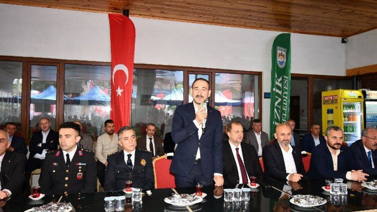 İznik Belediye Başkanı Kağan Mehmet Usta burada yaptığı konuşmada “Değerli Hemşerilerim, Rahmetin, bereketin ve şefaatin müjdelendiği, manevi duyguların en üst seviyede hissedildiği mübarek bir Ramazan ayını daha geride bırakarak, huzur içinde bayrama ulaşmanın mutluluğunu yaşıyoruz.Bayramlar, insanı insan yapan değerlerin yoğun olarak yaşandığı, dargınlıkların unutulduğu, sevgi ve saygının arttığı, herkesin birbirine hoşgörüyle baktığı en güzel zamanlardır.Hepimiz için büyük anlamlar taşıyan, birlik ve beraberliğimizi kuvvetlendiren, dostluk ve barış ortamı oluşturan bu bayramı, dargınlık ve küskünlüklerimizi unutarak, taşıdıkları anlam ve öneme uygun olarak kutlamalı, özellikle insanlık olarak kritik süreçlerden geçtiğimiz bu günlerde birbirimize ve ülkemize karşı sorumluluklarımızı daha çok hatırlamalıyız.Dünyanın farklı coğrafyalarında zulüm ve ızdırap altındaki kardeşlerimizin kurtuluşuna vesile olmasını Yüce Rabbim’den niyaz ediyorum.Bu duygu ve düşüncelerle; tüm vatandaşlarımızın Mübarek Ramazan Bayramını kutlar, Bayramın şehrimize, ülkemize, İslam âlemine ve tüm insanlığa, sağlık, huzur, mutluluk ve bereket getirmesini diler, sevgi ve saygılarımı sunarım” diye konuştu.