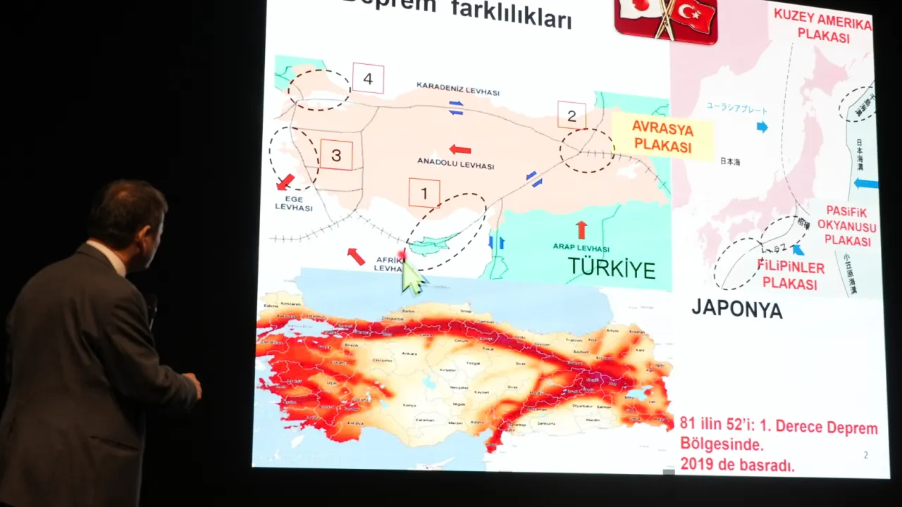 Türkiye’nin deprem hazırlığına dikkat çeken Yoshinori Moriwaki, “Silivri açıklarında 23 Nisan’da yaşanan 6.2’lik depremle enerji bir miktar boşaldı. Ancak Adalar ve Çınarcık fayında kırılma olmadı, enerji birikiyor. Ne zaman olacağı bilinmez ama bu bölgede deprem olabilir” uyarısında bulundu. Moriwaki, Türkiye’deki 21 milyon yapı stokunun yüzde 50’den fazlasının izinsiz olduğunu belirterek, “Depremler insanı öldürmez, binalar öldürür. Yumuşak zeminli bölgelerde kentsel dönüşüm hızlanmalı” dedi.