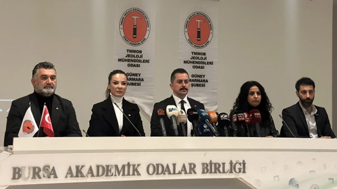 TMMOB'a bağlı Jeoloji Mühendisleri Odası Güney Marmara Şubesi, 6 Şubat depremlerinin yıl dönümünde 'insan odaklı ve afet dirençli kentlerin' oluşturulmasının öncelikli ve acil bir ihtiyaç olduğunu vurguladı. Şube Başkanı Mehmet Yıldız, Türkiye'nin afetlere hazır hale gelmesi için acil şekilde 'Afet, Acil Durum ve İklim Değişikliği Bakanlığı’nın kurulmasını önerdi.BURSA (İGFA) - Bursa'da Mehmet Yıldız başkanlığındaki TMMOB Jeoloji Mühendisleri Odası Güney Marmara Şubesi'nin Kahramanmaraş depremlerinin ikinci yıl dönümü dolayısıyla BAOB Akademik Odalar Yerleşkesi Toplantı Salonu'nda basın açıklaması yaptı.