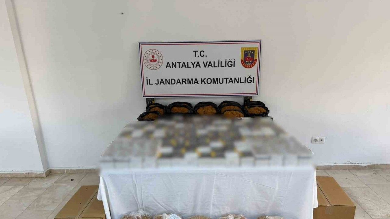 Antalya’da jandarmanın yaptığı operasyonda çok miktarda kıyılmış tütün ve makaron ele geçirildi.