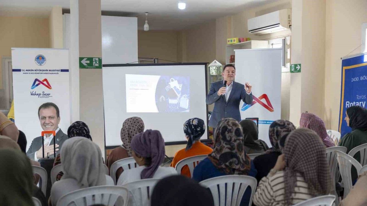 Mersin Büyükşehir Belediyesi Kadın ve Aile Hizmetleri Dairesi Başkanlığı, Mevlana Kadın ve Çocuk Atölyesinden yararlanan kadınların sosyalleşmesi ve farklı alanlarda bilgi edinmesi için 2 gün süren kapsamlı bir eğitim programı düzenledi.