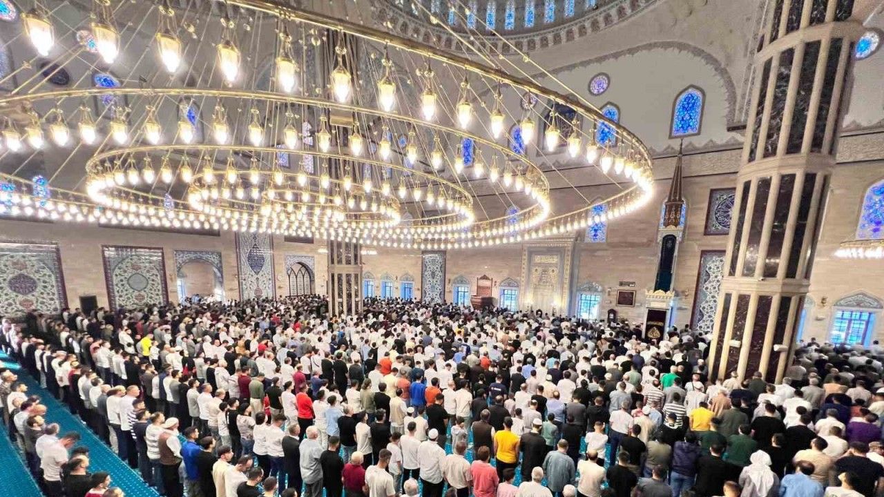 Kahramanmaraş’ta Kurban Bayramı nedeniyle binlerce vatandaş Türkiye’nin dördüncü büyük camisi olan Abdülhamit Han’da saf tuttu hep birlikte amin dedi.