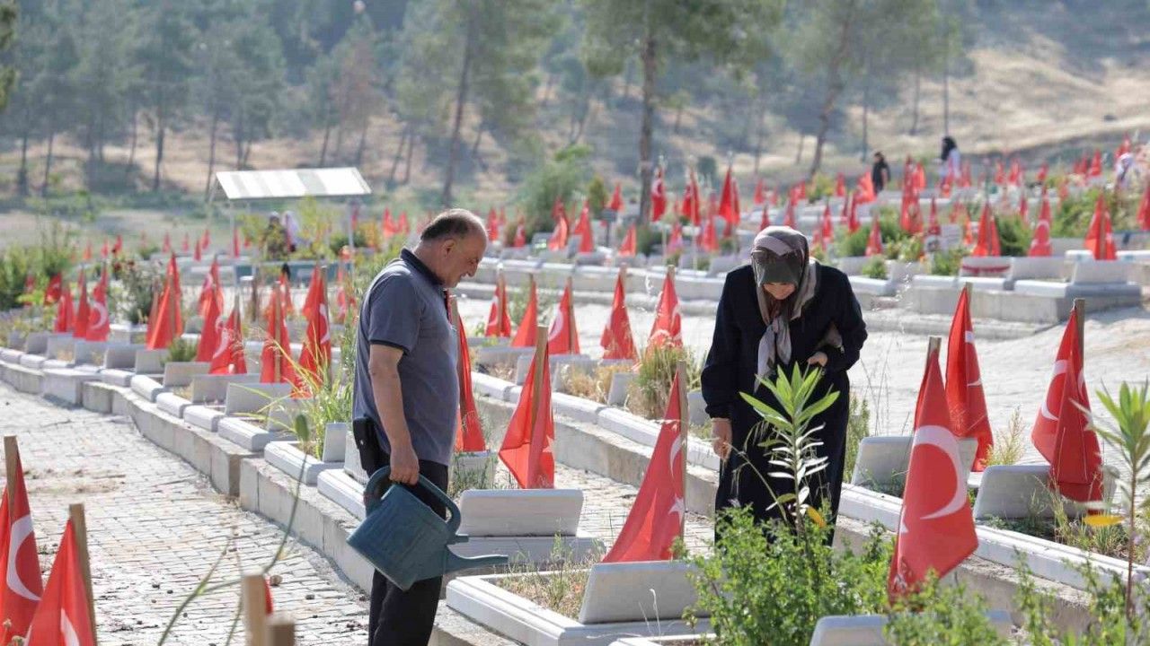 Kurban Bayramı’nın birinci gününde 6 Şubat depremlerinde hayatını kaybedenlerin defnedildiği Kapıçam Şehir Mezarlığı’nda hüzün hakim oldu. Sabahın erken saatlerinden itibaren mezarlığa gelen vatandaşlar, kabirleri temizledi, çiçek bıraktı, su dökerek Kur’an-ı Kerim okuyup dua etti. Depremde eşini, çocuğunu, anne-babasını kaybeden çok sayıda vatandaşın mezar başında gözyaşlarını tutamadığı görüldü. Bazı vatandaşlar mezar taşlarını okşayarak dua ederken, bazıları ise yanlarında getirdikleri su bidonlarıyla mezarları yıkayıp güller bıraktı.