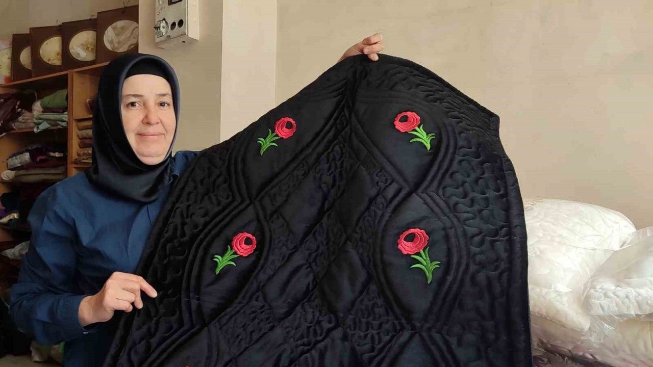Dulkadiroğlu ilçesi Fevzipaşa Mahallesi’ndeki kendine ait iş yerinde Osmanlı motifleri, Maraş işi sim sırma, yorganlar, seccadeler ve genç kızların çeyizleri arasında yer alan el işi ürünler yapan 3 çocuk annesi 53 yaşındaki Zennure Tuğrul, 15 ev hanımına iş imkanı sunuyor. Tuğrul, "Deprem sonrası çalışamam diye düşünüyordum ama işimize dört elle sarıldık. Çabalamaya gayret göstermeye devam edeceğiz. Hem biz kazanalım hem de memleketimiz kazansın. Burada sim sırma Maraş’a özgün, eski tarihi sim sırmalar yapıyorum, yaptırıyorum hanımlara. Ben burada nasıl kazanıyorsam onlar da iş yaparak kazanç sağlıyorlar. Ailelerine katkıda bulunuyorlar. Deprem sonrasında burayı kapatacaktım, işletmeyi düşünmüyordum. İşim olmaz diye düşünüyordum ama memleketimi terk etmeyi gönlüm el vermedi" dedi.