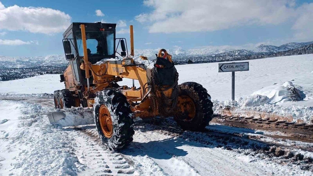 Kahramanmaraş’ta kar nedeniyle kapanan yollar büyükşehir belediyesi ekiplerinin çalışmasıyla yeniden açılıyor.