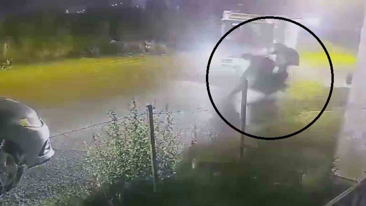 Hatay’ın Antakya ilçesinde kamyonetle çarpışan motosikletteki 2 şahıs yaralandı. Çarpışmanın etkisiyle motosikletteki 2 şahsın havaya uçma anıysa güvenlik kamerasına yansıdı.