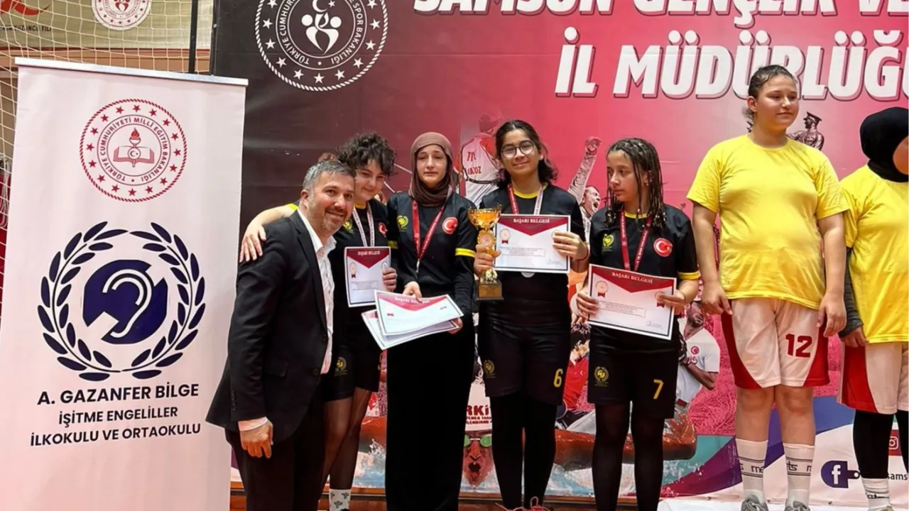 Kocaeli Karamürsel Ahmet Gazanfer Bilge İşitme Engelliler Ortaokulu, Samsun’daki Okul Sporları İşitme Engelliler Türkiye Şampiyonası’nda Yıldız Kızlar’da Türkiye 2’ncisi, Yıldız Erkekler’de Türkiye 3’üncüsü oldu.KOCAELİ (İGFA) - Kocaeli Karamürsel Ahmet Gazanfer Bilge İşitme Engelliler Ortaokulu öğrencileri, Gençlik ve Spor Bakanlığı’nın Samsun’da düzenlediği Okul Sporları İşitme Engelliler Türkiye Şampiyonası’nda büyük bir başarıya imza attı.
