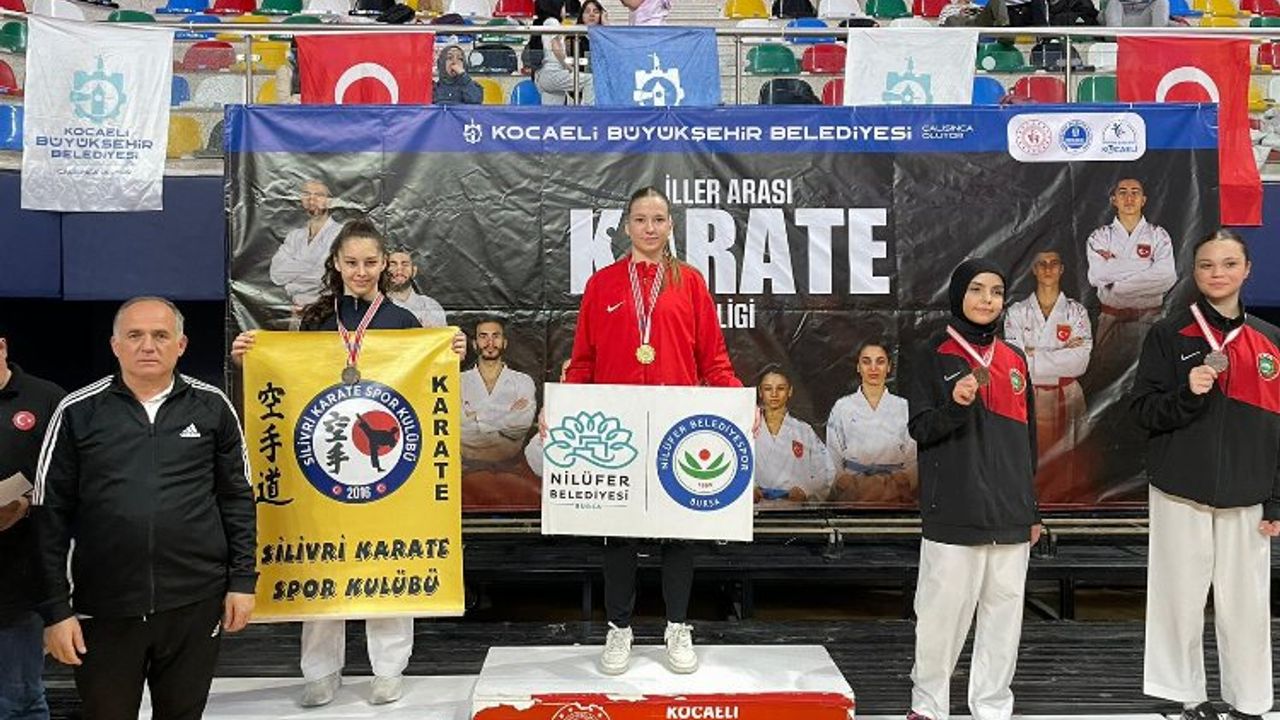 Nilüfer Belediyespor Kulübü’nün başarılı karatecileri, Kocaeli Ligi 3. ve final etabından bir altın, iki bronz madalya almaya hak kazandı.KOCAELİ (İGFA) - Nilüfer Belediyespor Kulübü, sporun çeşitli branşlarında gerçekleştirilen turnuvalara başarılarıyla damga vuruyor. Nilüfer Belediyespor’un karatecileri Nisanur Çakır, Naz Kayadere ile Cemre Günaydın, Kocaeli’de gerçekleştirilen illerarası Kocaeli Ligi’ni dereceyle tamamladı.