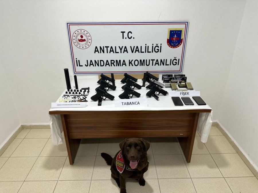 Şüphelilerin ikametlerinin ve silahları gönderdikleri kargo şirketlerinin belirlenmesinin ardından takibe alan Antalya İl Jandarma Komutanlığı KOM Şube Müdürlüğü, Manavgat KOM Timi, Manavgat Merkez Jandarma Karakol Komutanlığı ekipleri; şüphelilerin Aşağı Hisar Mahallesi'ndeki ikametlerinde yaptığı aramada ve kargo şirketinde ele geçirdiği şüphelilere ait kargo gönderilerinin içerisinde 9 adet ruhsatsız tabanca ve çok sayıda fişek ele geçirdi.