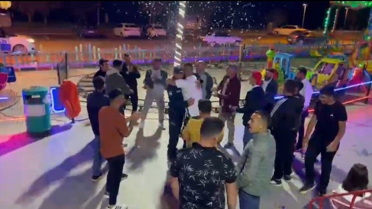 Antalya’nın Gazipaşa ilçesinde bir grup gencin yaptığı kavga ihbarı konfetili kutlamaya dönüştü. Olay yerine gelen ekipler, kargaşanın içine girdiklerinde patlayan konfetiler ve kutlamalarla karşılaştı.