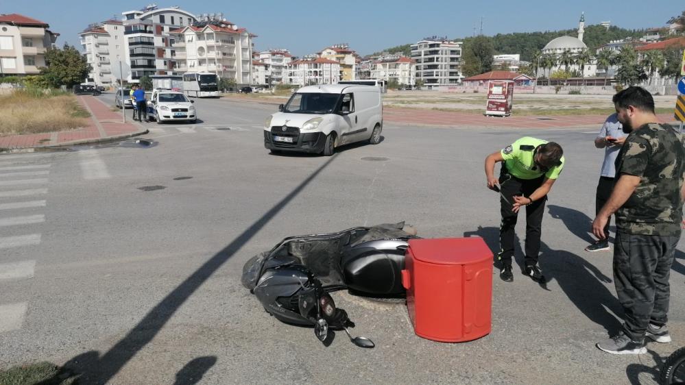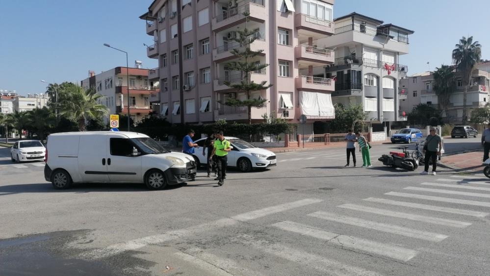 Antalya'nın Manavgat ilçesinde hafif ticari araç ile motosiklet çarpıştı. Motosiklet sürücüsünün yaralandığı kaza güvenlik kamerasına yansıdı. Kaza; Bahçelievler Mahallesi 5044 sokakta meydana geldi. Talha Ş., idaresindeki 07 BDC 531 plakalı hafif ticari araca, 5044 sokak kavşağından U dönüşü yaptığı sırada, aynı istikamette ilerleyen Bekir G.'nin kullandığı 07 BGJ 548 plakalı motosiklet çarptı. Kazada yaralanan motosiklet sürücüsü Bekir G., sağlık ekibinin olay yerindeki müdahalesinin ardından ambulansla hastaneye kaldırıldı. Kaza anı bir iş yerinin güvenlik kamerasına yansıdı. Kazayla ilgili inceleme başlatıldı.