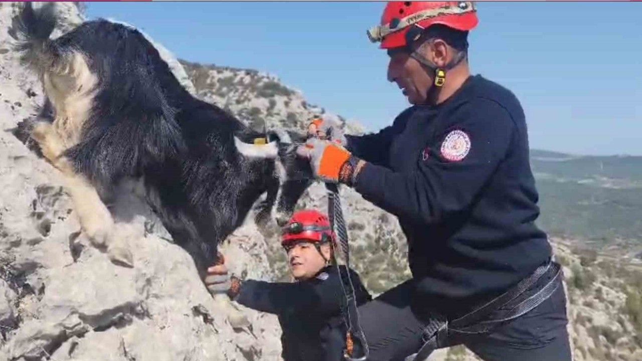 Alınan bilgiye göre, Erdemli’nin Dağlı Mahallesi’nde hayvancılık yapan Mesut Topal, keçilerinden 6’sının eksik olduğunu fark etti. Drone desteği ile keçilerini arayan Topal, hayvanlarının yüksekliği yaklaşık 150 metreyi bulan kayalıkların zirvesine 10 metre kala mahsur kaldığını gördü. Kendi çabalarıyla keçilerini kurtaramayan Topal, 112 Acil Çağrı Merkezi’ni arayarak yardım istedi. İhbar üzerine bölgeye Mersin Büyükşehir Belediyesi İtfaiye Dairesi Başkanlığı Dağcılık ve Arama Kurtarma Amirliği ekibi yönlendirildi. 4 kişiden oluşan ekip, kayalıklarda mahsur kalan keçileri kurtarmak için harekete geçti. İp ile düzenek hazırlayan itfaiye personeli, yaklaşık 2 saat süren operasyonun sonunda, 6 keçiyi mahsur kaldıkları yerden kurtararak sahibine teslim etti.