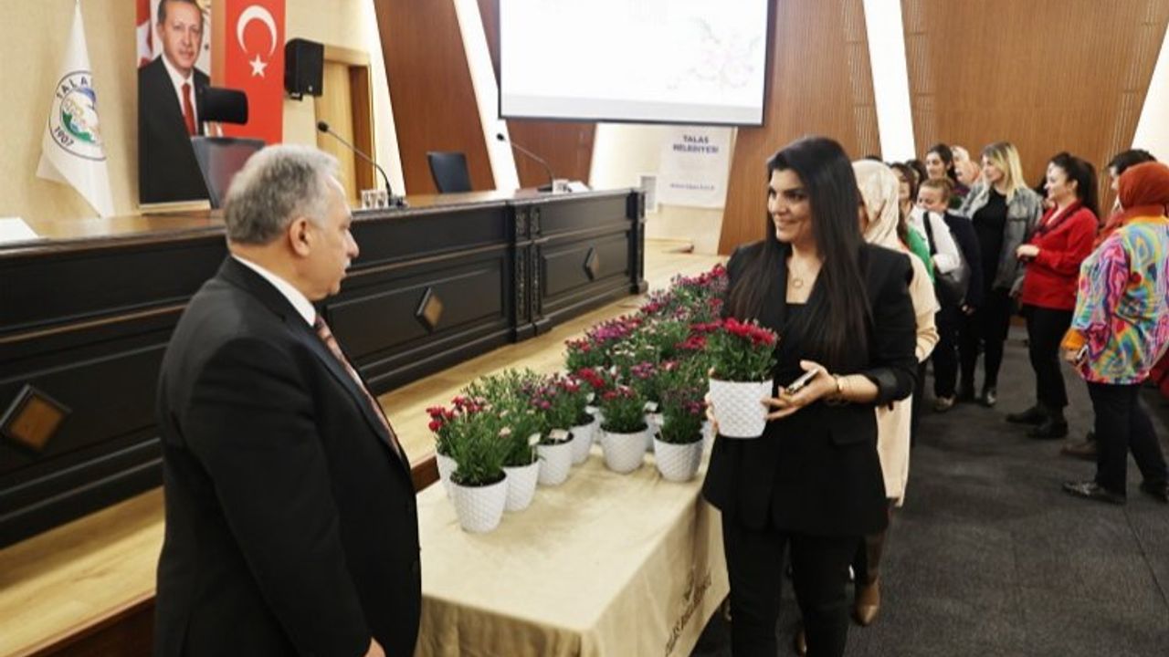 Kayseri Talas Belediye Başkanı Mustafa Yalçın, Anneler Günü münasebetiyle belediyede görev yapan kadın personellere çiçek vererek günlerini kutladı.
