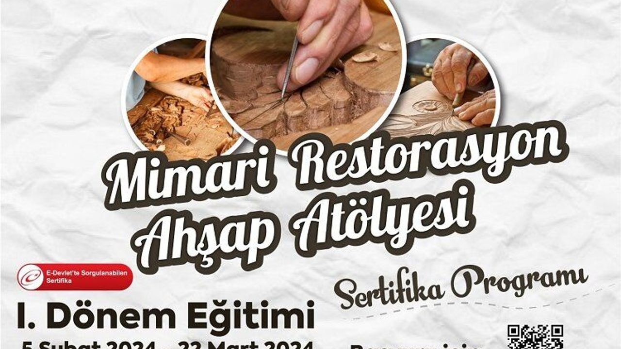 Merkezin mimari restorasyon ahşap, demir ve taş atölyesi birinci dönem sertifikalı eğitim programlarına kayıtlar 28 Ocak’ta sona erecek. 5 Şubat-22 Mart arasındaki ilk dönem eğitim programına kayıt yaptırmak isteyenler www.kaysem.kayseri.edu.tr adresinden veya 0352 432 3838-42340 numaralı telefondan detaylı bilgi alabilir.