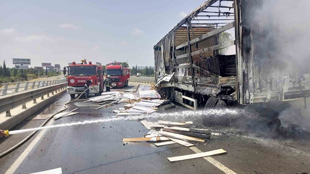 Antalya’da mobilya malzemesi yüklü tır seyir halindeyken yandı. İtfaiye ekiplerinin zamanında müdahalesi ile yangın söndürülürken büyük çapta maddi hasar meydana geldi.