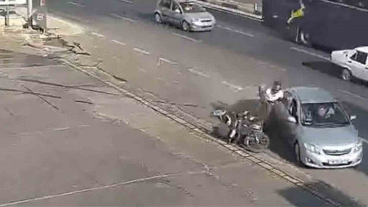 Antalya’nın Serik ilçesinde bir motosikletle otomobil çarpıştı. Kazada motosiklet sürücüsü yaralanırken, kaza anı güvenlik kamerası tarafından anbean kaydedildi.