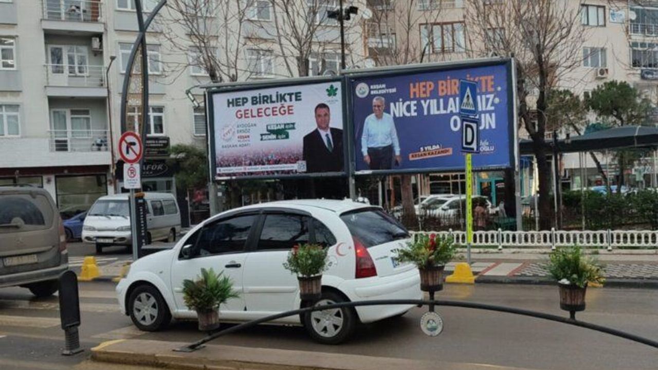 Gelecek Partisi Keşan Belediye Başkan Adayı Aydoğan Ersöz, bir basın toplantısı yaparak, kendisinin reklamını içeren Şehitlik Parkı köşesindeki bilboardın Keşan Belediye Başkanı Mustafa Helvacıoğlu tarafından indirtildiğini iddia etti.Erdoğan DEMİR / EDİRNE (İGFA) - Gelecek Partisi Keşan İlçe Başkanlığı'nda basın açıklaması yapan Keşan Belediye Başkan adayı Aydoğan Ersöz, belediyenin özel şirkete kiraya verdiği bilbordları şirketle görüşerek ödemeyi de banka üzerinden yaparak kiralaması ardından şirket tarafından fotoğraflarının asıldığını anımsatarak, bir gün sonra sökülmesine tepki gösterdi.