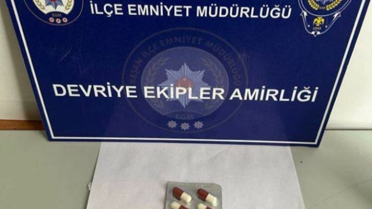 Edirne'nin Keşan ilçesinde, durumundan şüphelenilerek durdurulan bir şahsın üzerinde yapılan aramada, 14 adet Galara hap olarak tabir edilen sentetik ecza ele geçirildi.Erdoğan DEMİR / EDİRNE (İGFA) - Keşan İlçe Emniyet Müdürlüğü ekipleri, Yukarı Zaferiye Mahallesi Rasim Ergene Caddesi üzerinde devriye görevi yaparken, durumundan şüphelendikleri A.K.D. isimli şahsı durdurdu.
