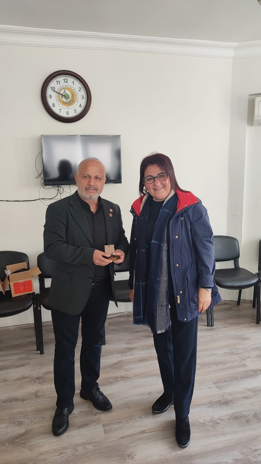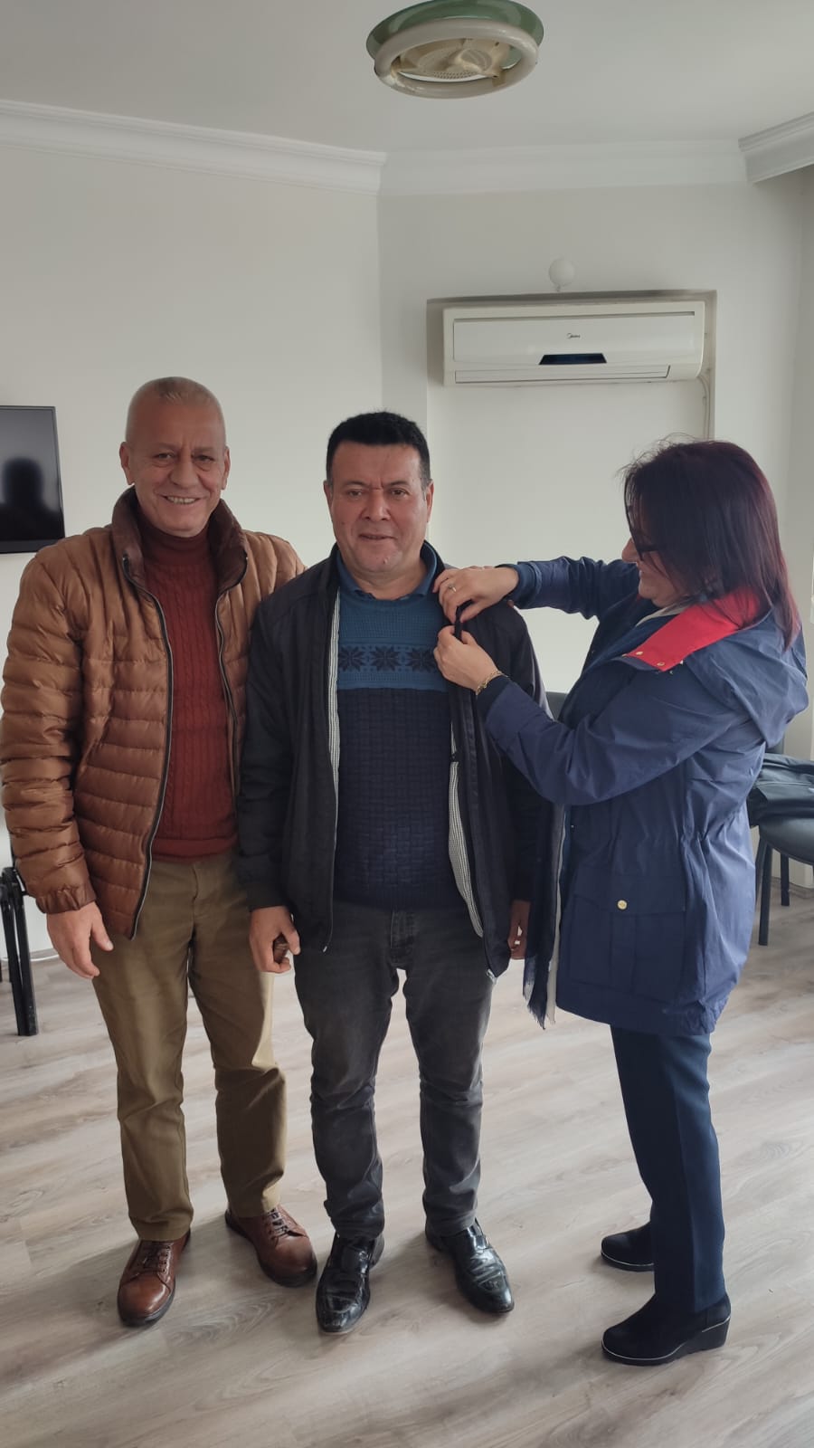 Alanya Muhtarlar Derneği’ni ziyaret edip Dernek Başkanı ve İspatlı Mahallesi Muhtarı Hasan Yüksel ve diğer mahalle muhtarları ile bir araya gelen THK Başkanı Keyaoğlu, rozetleri muhtarlara takarak teşekkürlerini sundu.