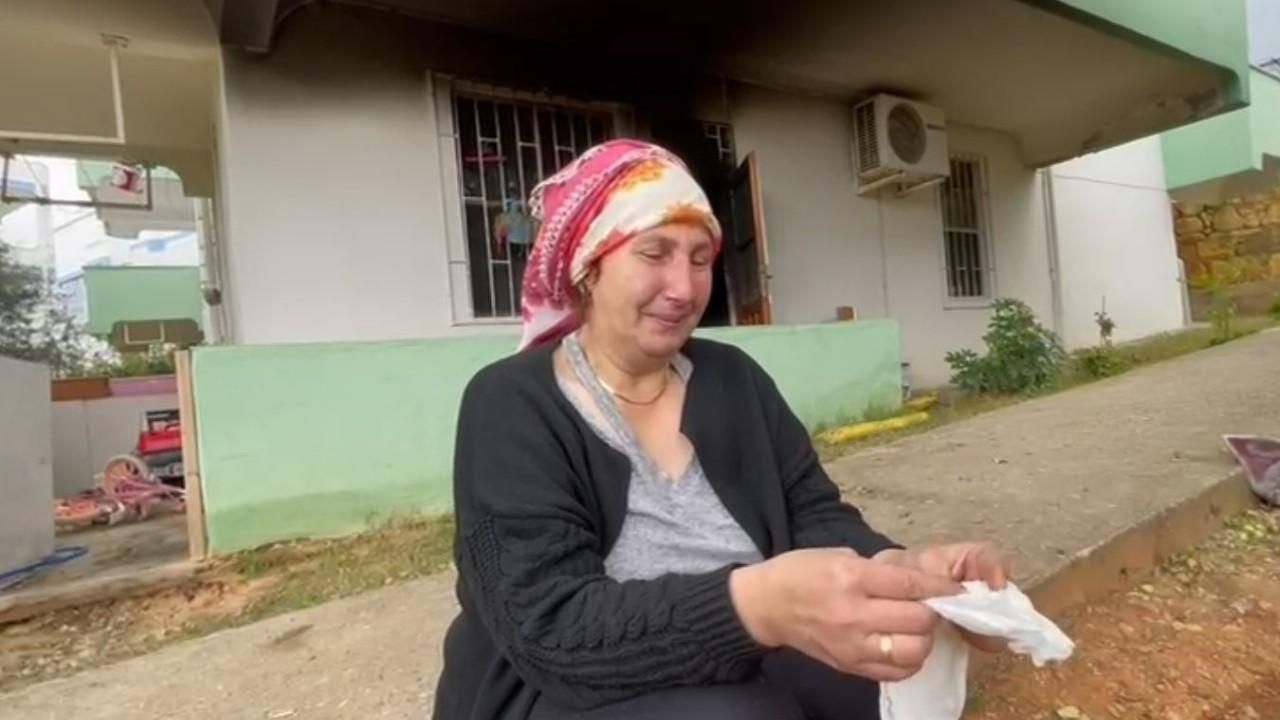 Antalya’nın Alanya ilçesine klimadan çıkan yangında bir ev yanarak kullanılamaz hale geldi. Yangında oğlu ile canını zor kurtaran Şerife Tekin, kullanılamaz hale gelen evinin önünde oturup gözyaşı döktü.