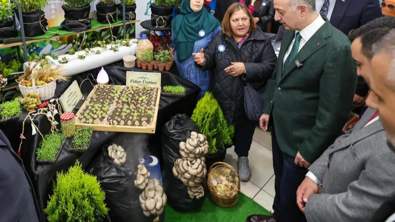 Kursiyerlerin ürünlerini tek tek inceleyerek bilgi alan Başkan Büyükakın sergide yer alan ürünleri oldukça beğendi.