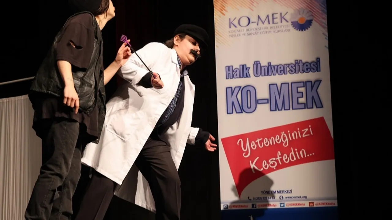 Kocaeli Büyükşehir Belediyesi Meslek Sanat Eğitimi Kursları (KO-MEK) Yahya Kaptan Kurs Merkezinde 9 ay boyunca eğitim alan uygulamalı tiyatro kursiyerleri, eğitimlerinin meyvesini sahnede verdi. Usta öğretici Murat Kaya’nın rehberliğinde toplam 200 saatlik tiyatro eğitimi alan 24 kursiyer, “Yanlış Anlama” adlı komedi türündeki tiyatro oyununu Süleyman Demirel Kültür Merkezi’nde (SDKM) seyirciyle buluşturdu.
