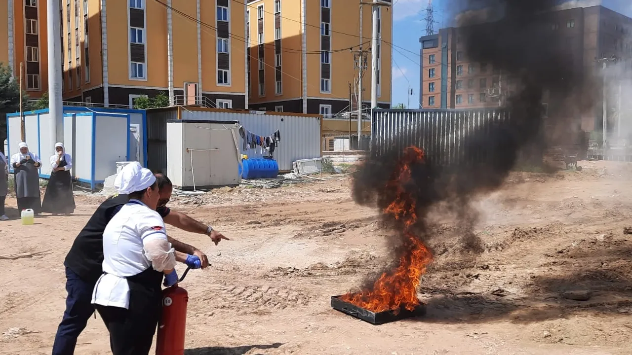 Teorik bölümde; yanma ve yangının temel prensipleri, yangın sınıfları ve türleri ile acil durumlarda yapılması gereken doğru hareket tarzları konusunda kapsamlı bilgiler aktarılırken, uygulamalı bölümde ise taşınabilir yangın söndürücülerin kullanımı pratik olarak gösterildi.